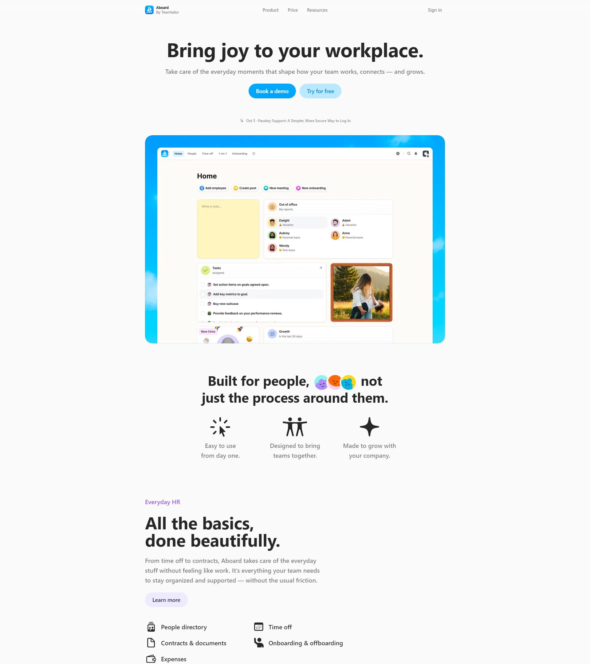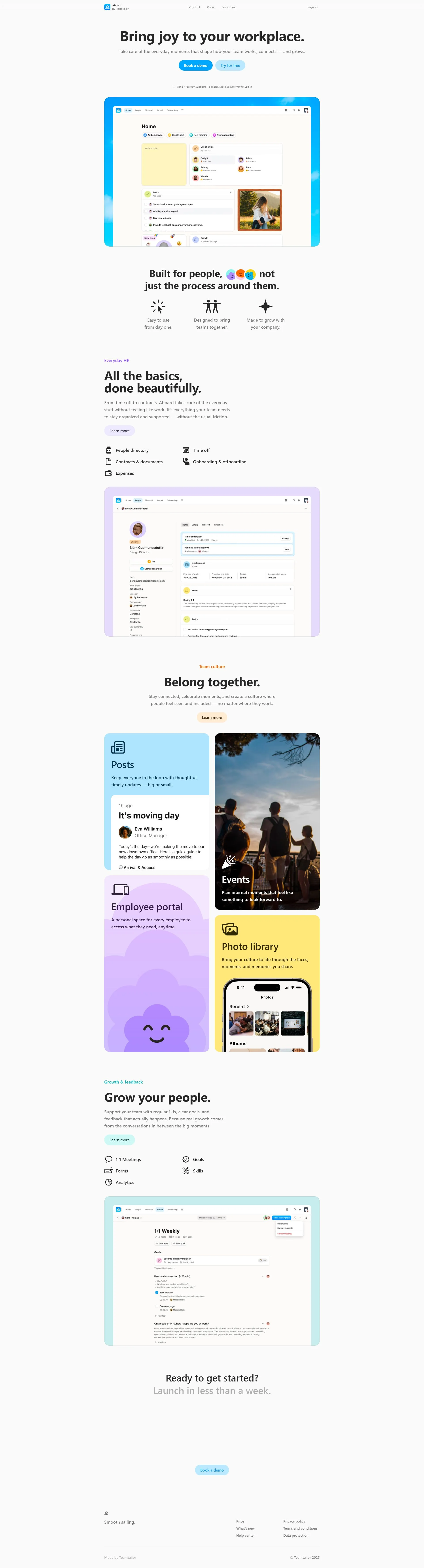 Lightweight HR platform for time off, onboarding, contracts, and culture.