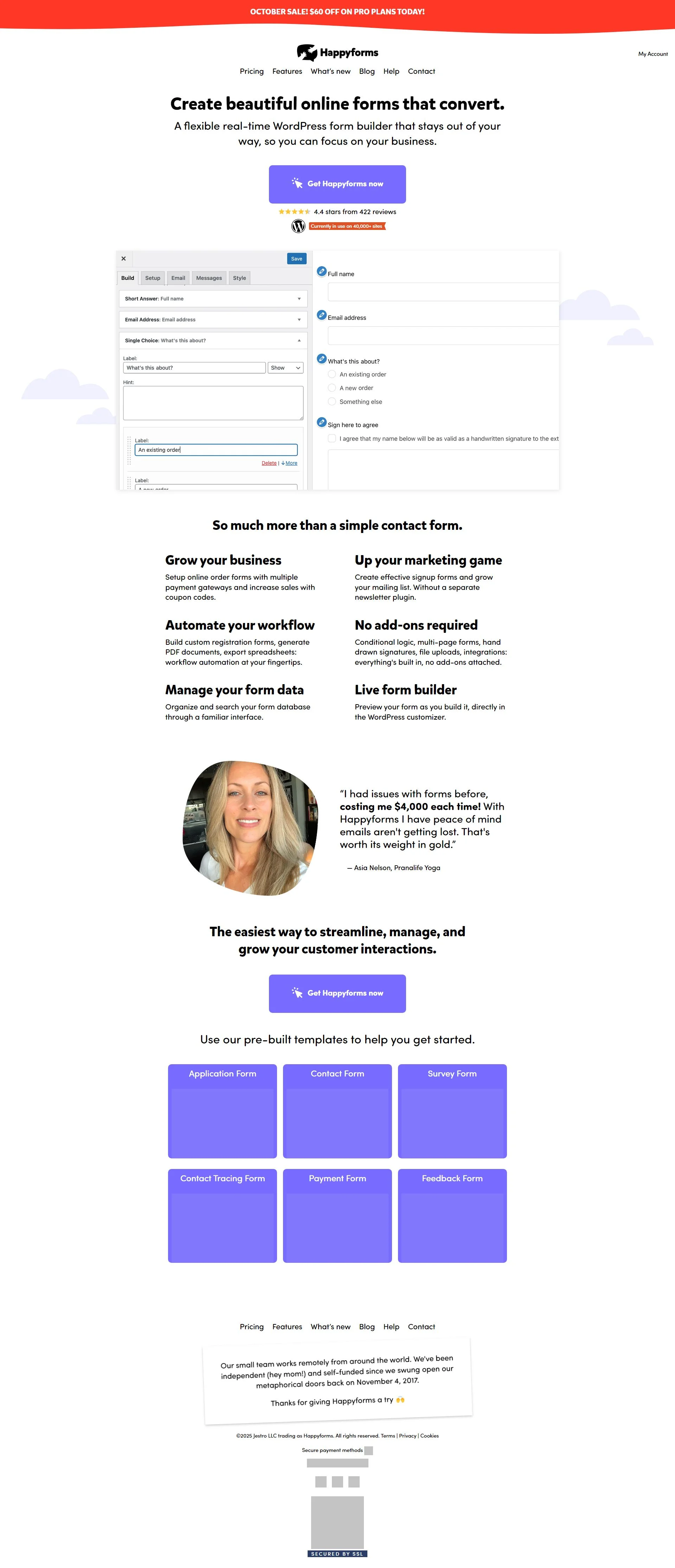 WordPress form builder creating contact forms