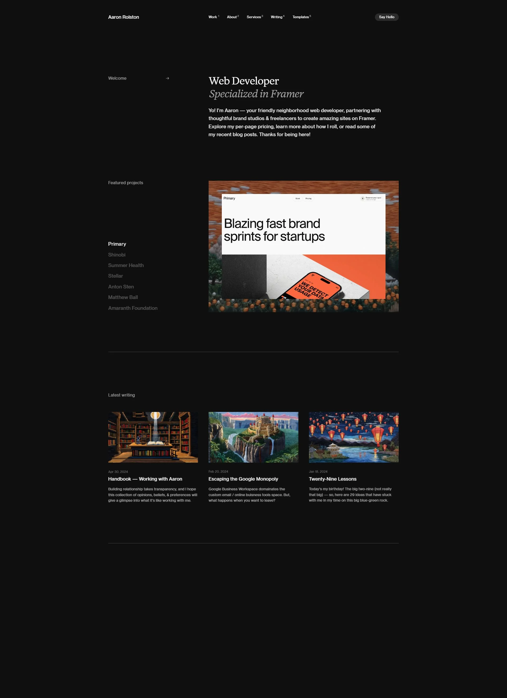 Designer–developer portfolio; projects in UI, web, and interactive work.