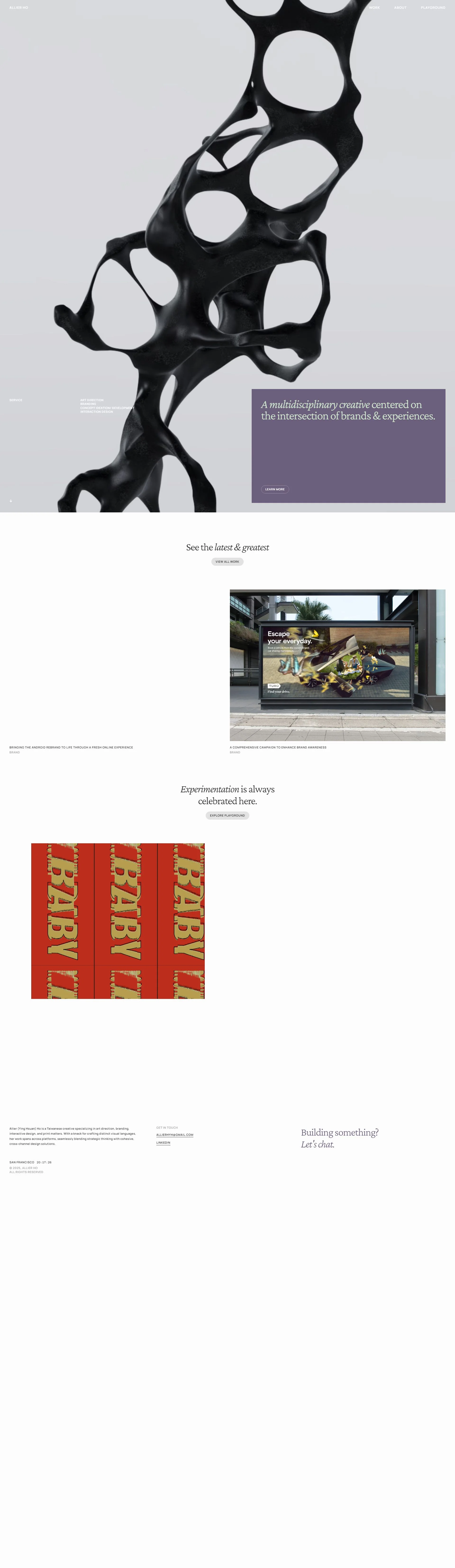 Designer portfolio with systems thinking, clean interfaces, and motion.