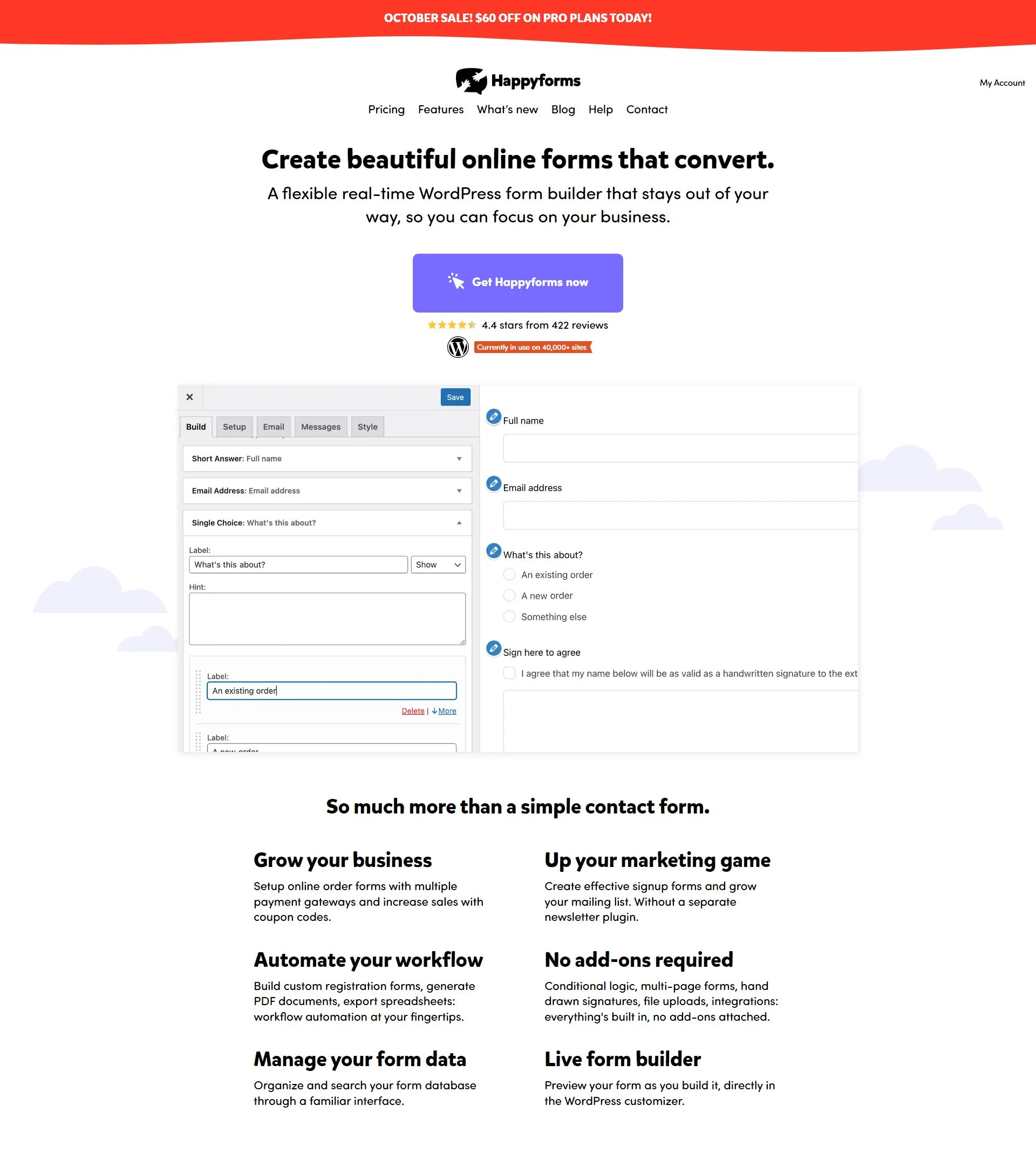 WordPress form builder creating contact forms