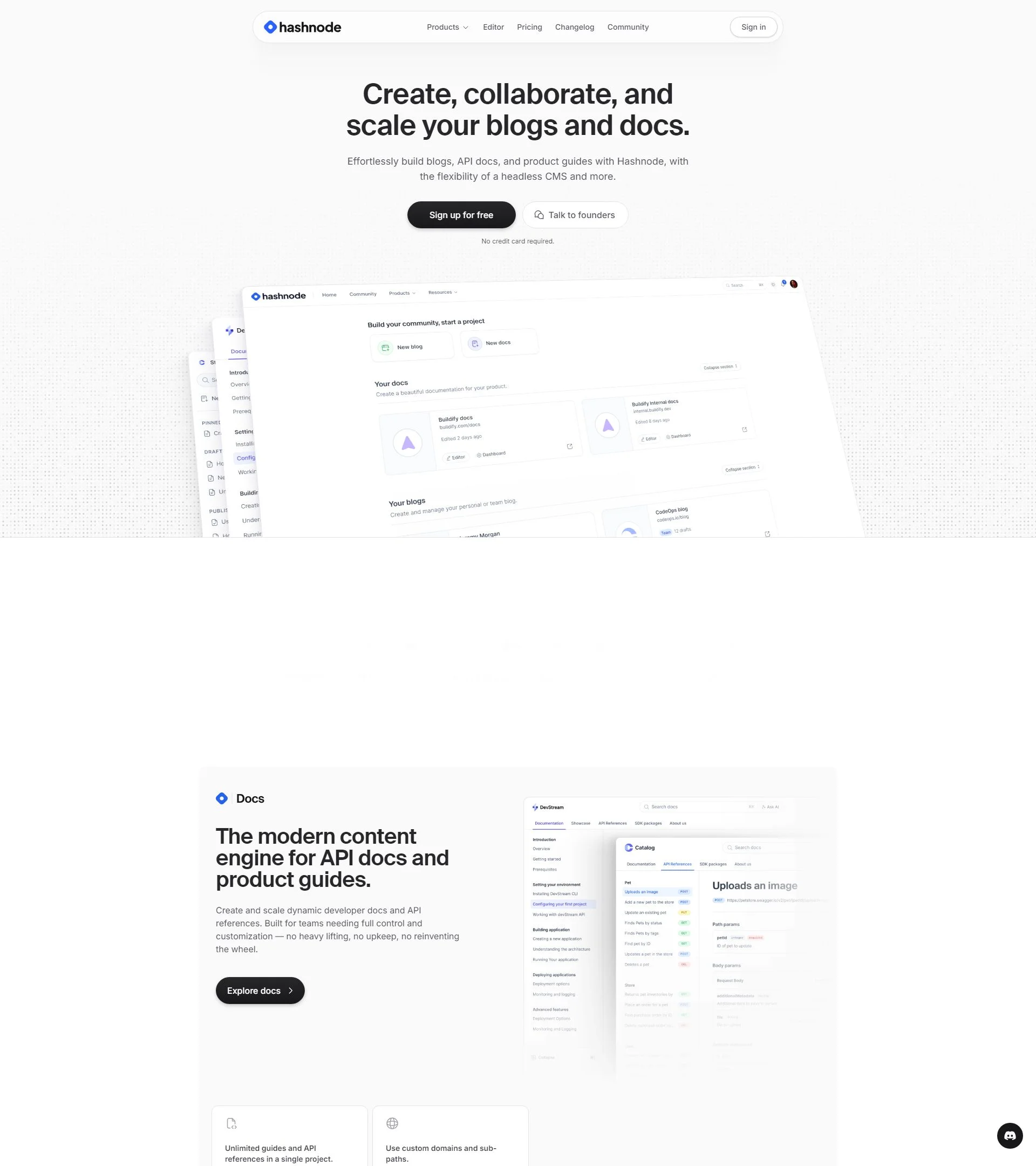 Developer blogging platform with custom domains, drafts, and community reach.