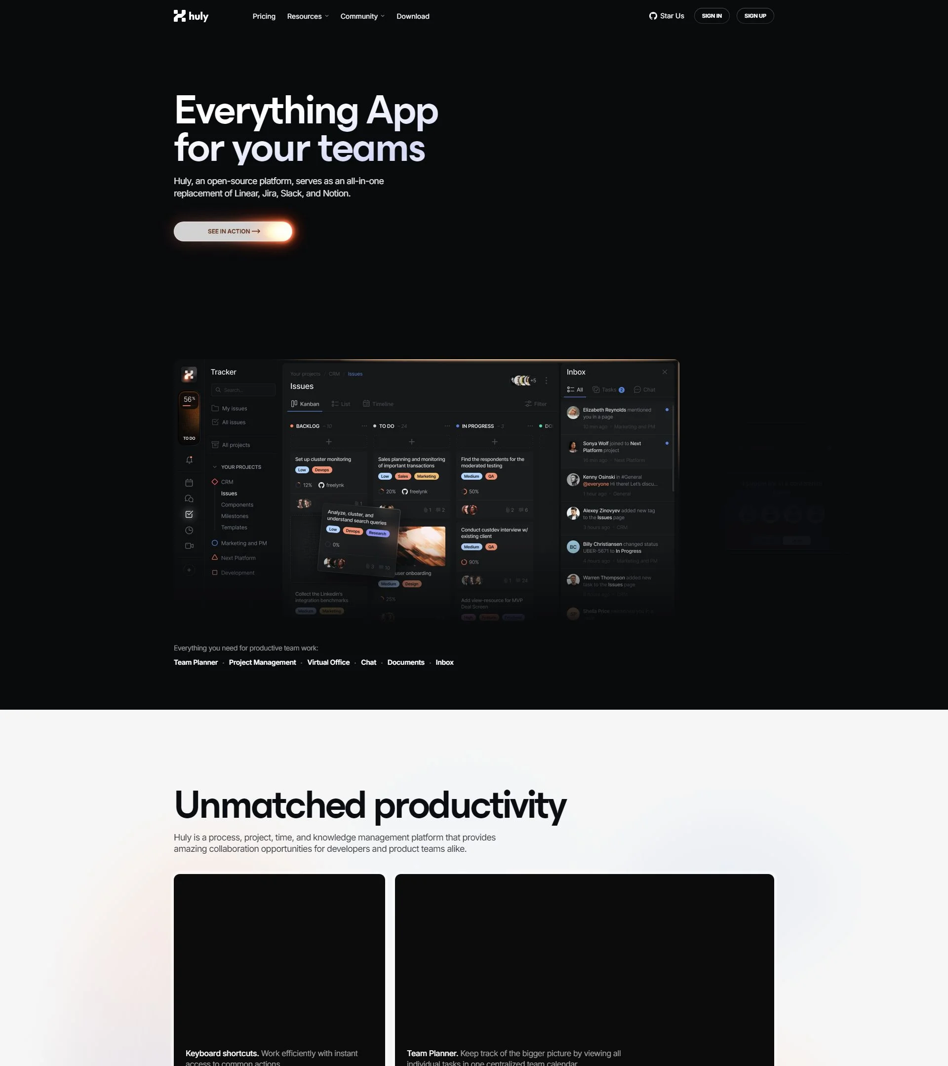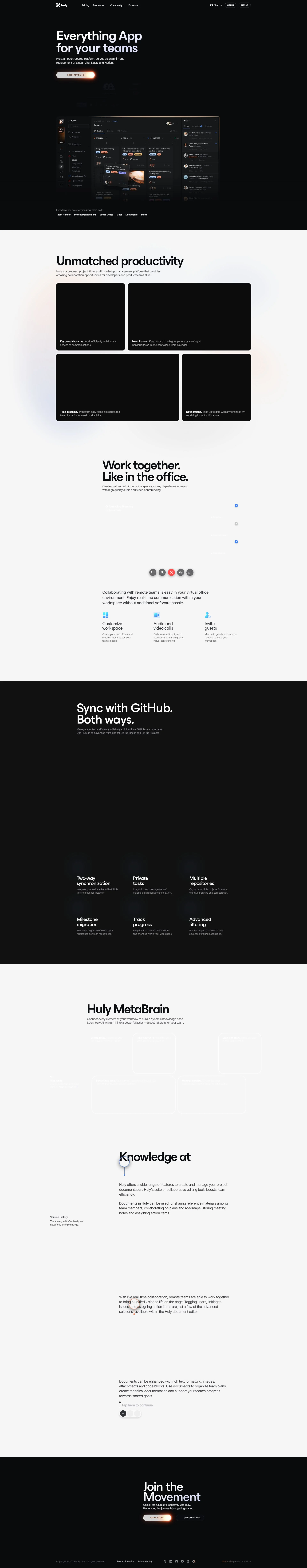 Open, all-in-one platform for issues, chat, docs, and team planning.
