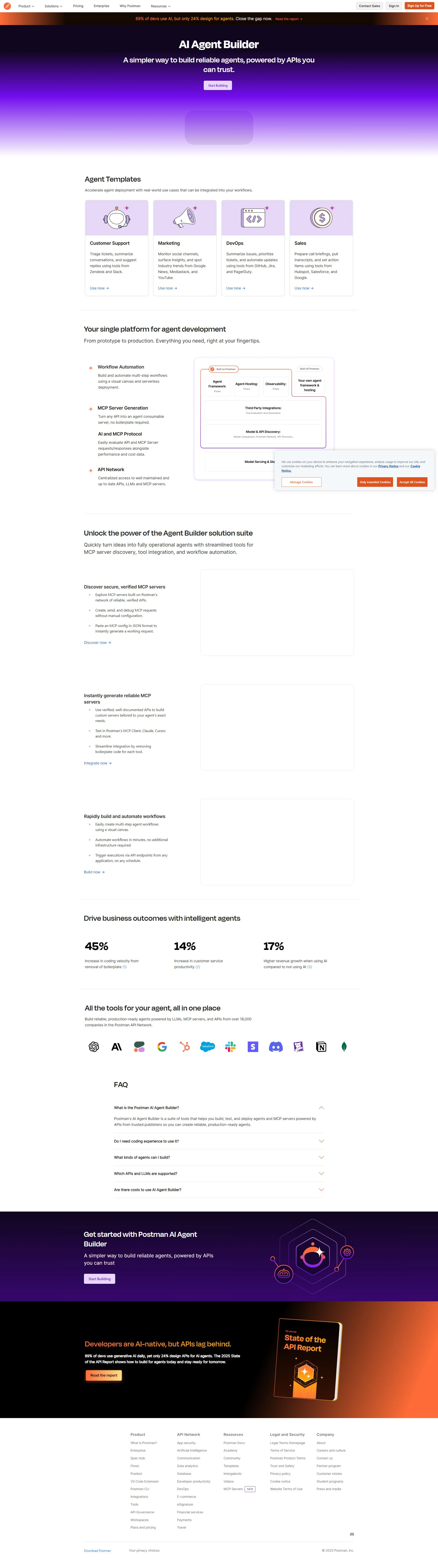 AI agent creation platform integrated with Postman API tools