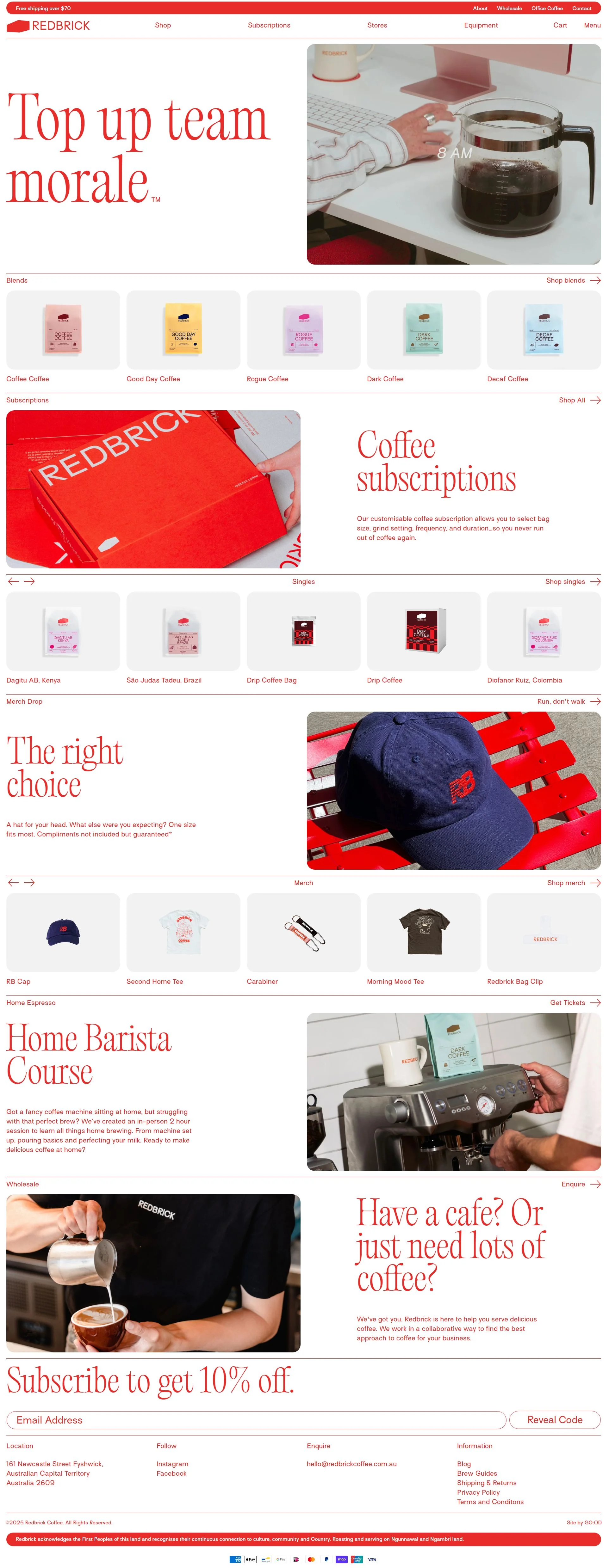 Specialty coffee roaster with seasonal beans, brews, and subscriptions.